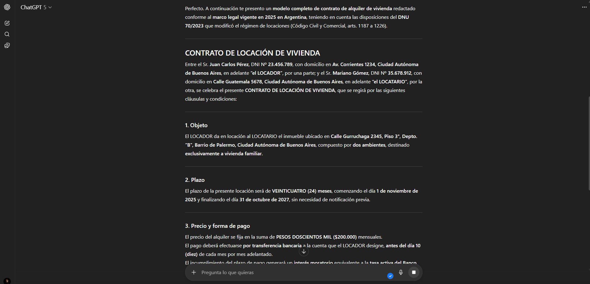 Sin embargo, el uso de modelos de lenguaje como ChatGPT debe entenderse como un asistente de redacción, no como un reemplazo del asesoramiento jurídico. Los contratos tienen implicancias legales que deben cumplir con la normativa vigente en Argentina, como las disposiciones del DNU 70/2023 y principios generales del derecho civil.
